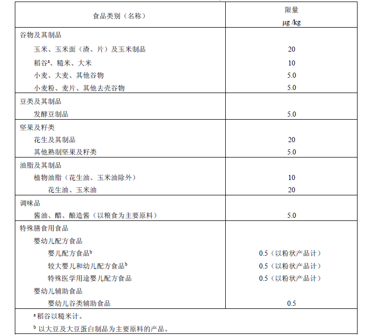GB2761—2011食品安全國家標準食品中真菌毒素限量規(guī)定了食品中黃曲霉毒素B1的限量指標。