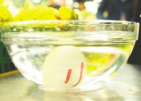 1.2:加入200ml純凈水,將雞蛋放入溶液中,懸浮(不能下沉)的蛋為陳舊或腐壞蛋(試劑可重復(fù)使用,用完后蓋上蓋子放于通風(fēng)干燥處即可)。