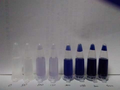 取0.5mL樣品液于離心管中,加入1 mL的檢測試劑,試劑立即與食鹽中的碘發生化學反應而顯色.