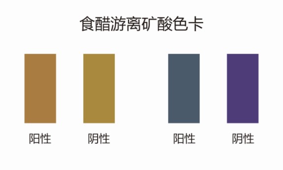 1.1:取細玻璃棒或毛細管沾少許樣品于檢測試劑A上,10min內,若點樣處出現紫色斑點或紫色環(環內淺紫色)為陽性結果,試紙不出現紫色斑或出現紫色環(環內黃色或白色)為陰性結果。(檢測白醋時要等試紙稍干后觀察);