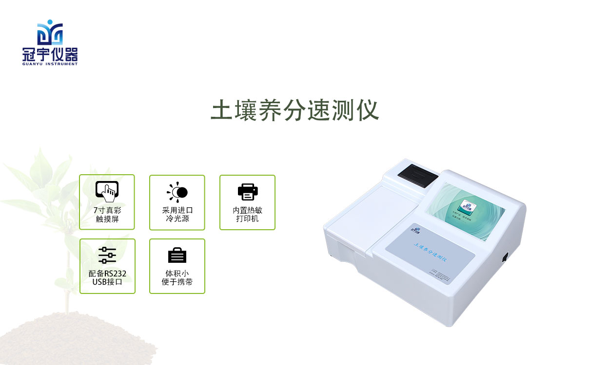冠宇儀器土壤養分檢測儀能夠快速檢測土壤有機質,土壤中全氮,化肥中全氮,土壤中全磷,化肥中全磷,植物中全磷,土壤中全鉀,化肥中全鉀,土壤中速效氮,化肥中速效氮,土壤中速效磷,化肥中速效磷,植物中全磷,土壤中速效鉀,化肥中速效鉀,氯離子,硝態氮。