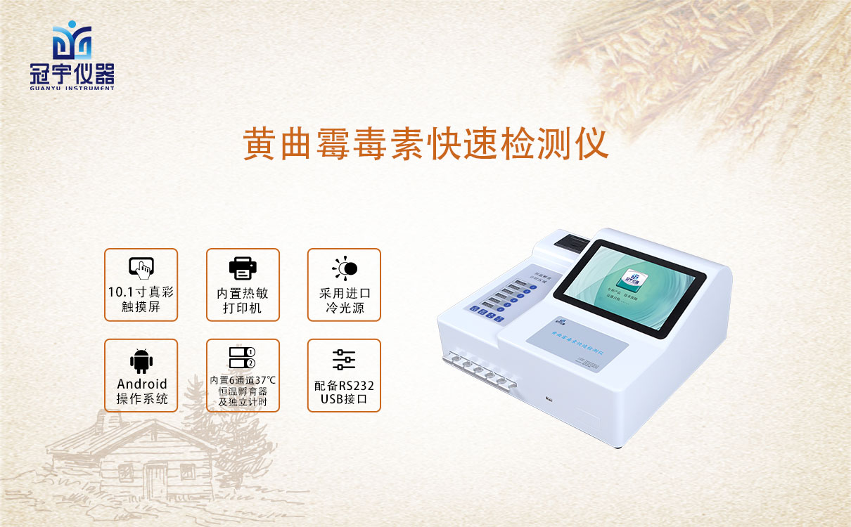 7.儀器檢。冠宇儀器黃曲霉毒素檢測儀能夠快速定量檢測玉米、小麥、大米、大麥、小米和燕麥等谷物、飼料、面粉、食用油、調(diào)味品中黃曲霉毒素B1,適用于糧庫收糧檢測、糧油監(jiān)測中心、糧油飼料生產(chǎn)加工、食品加工貿(mào)易、畜禽養(yǎng)殖戶自查、工商質(zhì)監(jiān)部門用于市場快速篩查等。