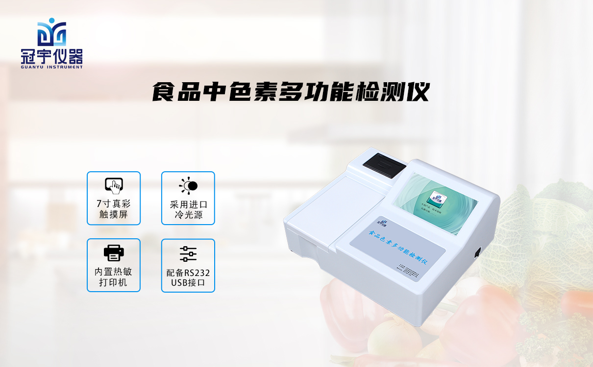 冠宇儀器食品色素多功能檢測(cè)儀能夠快速檢測(cè)蘇丹紅,靛藍(lán),亮藍(lán),檸檬黃,日落黃,胭脂紅,莧菜紅,誘惑紅,羅丹明B等色素指標(biāo)。