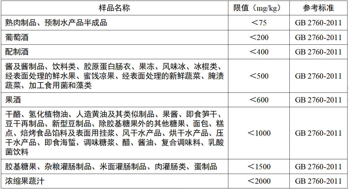 ADI 0-25mg/kg (以山梨酸計,FAO/WHO 1994)