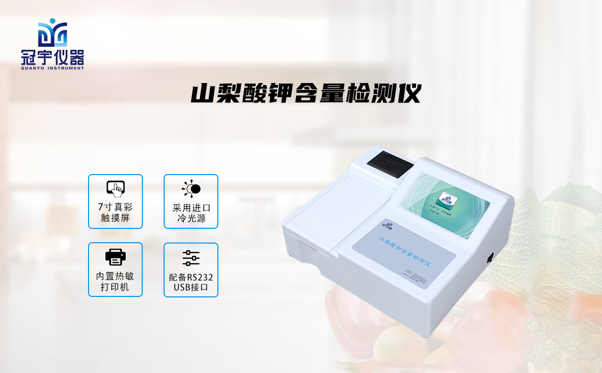 冠宇儀器山梨酸鉀含量檢測儀GY-SSLSJ10能夠快速檢測飲料、葡萄酒、醬油、醬類制品、魚干、魚肉香腸、肉制品、蔬菜水果制品、糕點、糖果等中的山梨酸鉀的總量。適應于食品監測中心、食品生產加工自檢、食品加工貿易、工商質監部門用于市場快速篩查等。