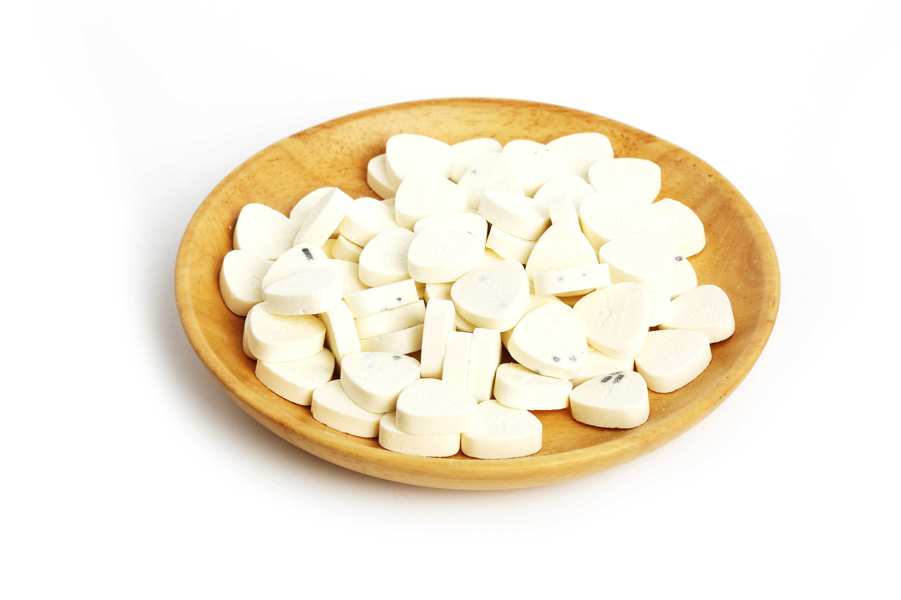 現在市售的奶片有許多種,比如奶酪片、羊奶片、牛奶片、奶球、酸奶干、奶味奶酪、牛初乳奶貝和奶酥等。這些產品五花八門,大都以地方特產的身份在市場上銷售。然而仔細看看配料表就會發現,除了“奶粉”、“白砂糖”,“植脂末”、“酸味劑”、“甜味劑”、“香精”等添加劑也赫然在列。