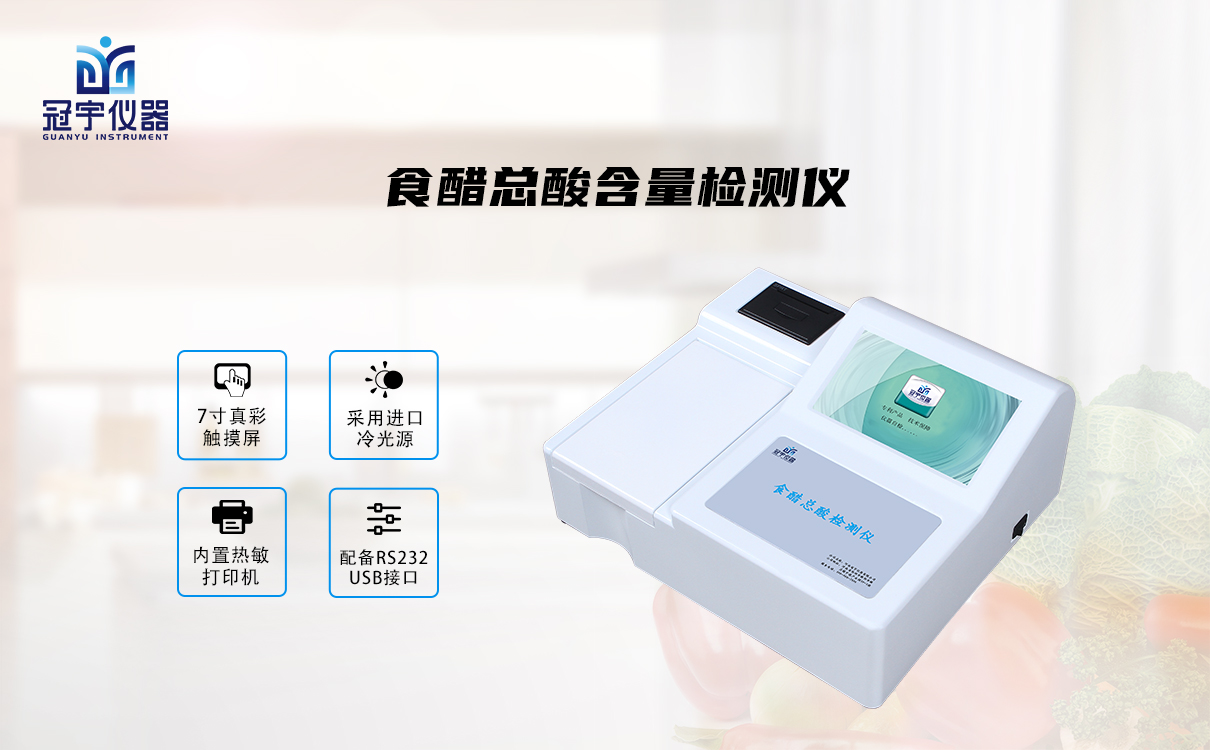 為確保食醋的品質質量,相應的超市及食醋生產廠家也可運用冠宇儀器食醋總酸含量檢測儀對食醋進行抽查和自檢。確保食醋的品質安全。冠宇儀器食醋總酸含量檢測儀能夠快速檢測食醋等中的總酸總量。