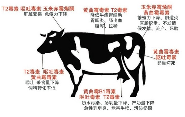 近年來霉菌毒素污染飼料及原料引起的畜牧養殖業的一連串連鎖反應,對養殖場造成很多的沖擊,嚴重影響養殖人的利益,霉菌毒素污染不容忽視,下邊說一下霉菌毒素對牛的影響,供養牛人參考和防范: