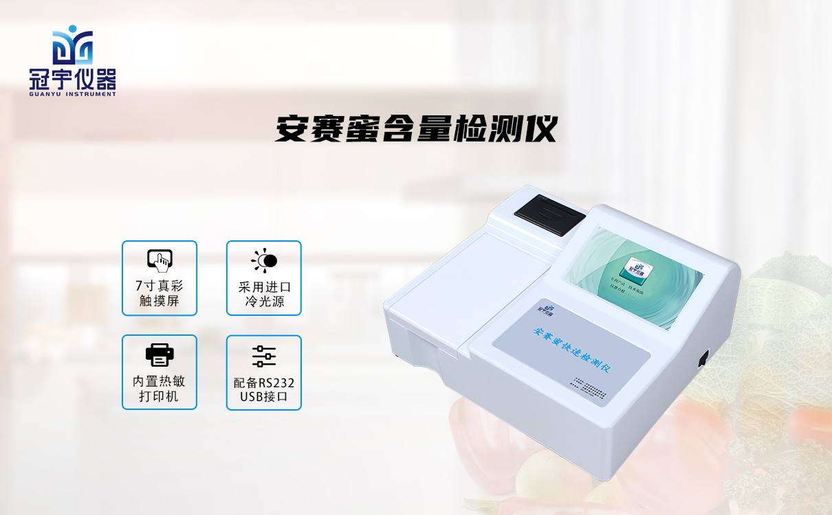 4.綜上預防措施中,都需要一款專用的檢測儀器來檢控食品生產中及成品食品的安賽蜜含量,來具體判定是否超標,用以避免過量攝入。冠宇儀器安賽蜜含量檢測儀GY-SASM10能夠快速檢測蜜餞、果醬、糖果、面包糕點、飲料等中的安賽蜜含量。