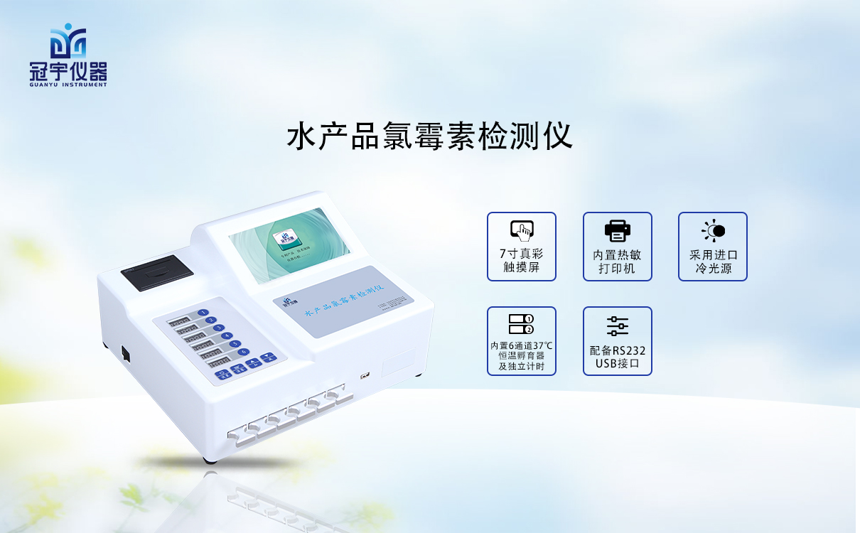 冠宇儀器GY-720水產(chǎn)品氯霉素檢測儀應(yīng)用競爭抑制免疫層析的原理,通過檢測線熒光定量卡中的熒光強弱程度,定量分析待檢樣品中氯霉素殘留含量。http://www.dgfuzhou.com/products-zh-2622.html