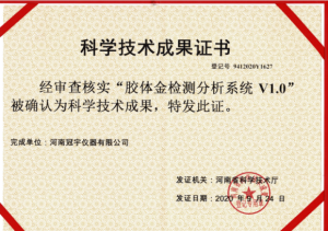 河南冠宇儀器有限公司(以下簡稱:冠宇儀器)繼多項軟件著作權證書、實用新型專利證書、計算機軟件著作權等一系列證書之后,又獲由河南省科學技術廳頒發的一項“膠體金檢測分析系統V1.0科學技術成果證書”,一系列的權威肯定,彰顯了冠宇儀器強大的技術研發能力,也體現出公司為客戶提供優質產品的強大決心。