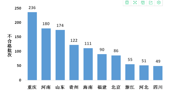 圖3各省市場銷售蔬菜類食用農產品抽檢不合格數量分布TOP10