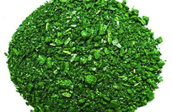 孔雀石綠是一種三苯甲烷類人工合成有機化合物,既是染料,也是殺菌劑,可致癌。其制成可由1分子(mol)的苯甲醛和2分子的二甲苯胺在濃鹽酸混合下,加熱縮合成隱色素堿,在酸性下加過氧化鉛使其氧化,并在溶液中沉淀出色素堿。