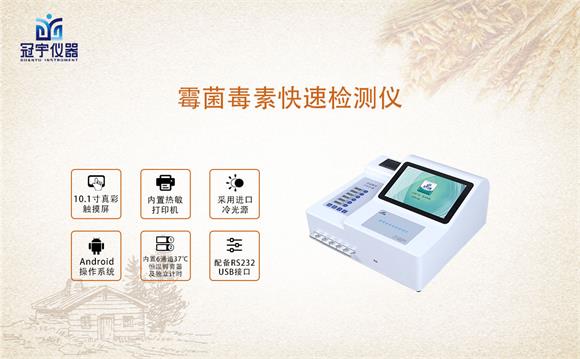 冠宇儀器生產的霉菌毒素檢測儀能夠快速定量檢測糧食、飼料、谷物、食用油、調味品等食品中黃曲霉毒素、T2毒素、嘔吐毒素、赭曲霉毒素、伏馬毒素、玉米赤霉烯酮,真菌毒素殘留定量分析儀適用于糧油監測中心、糧油飼料生產加工、食品加工貿易、畜禽養殖戶自查、工商質監部門用于市場快速篩查等