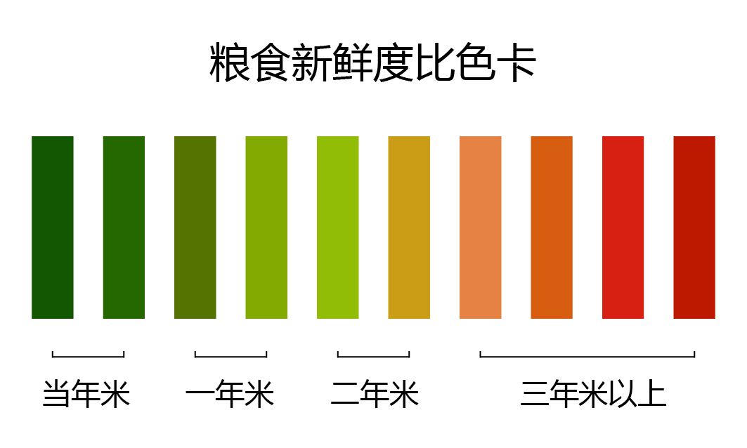1.2:判斷新鮮度(當(dāng)年、一年、兩年、三年及以上)或摻陳情況;也可將大米放在保鮮膜上,滴上試劑至大米浸潤,觀察顏色。